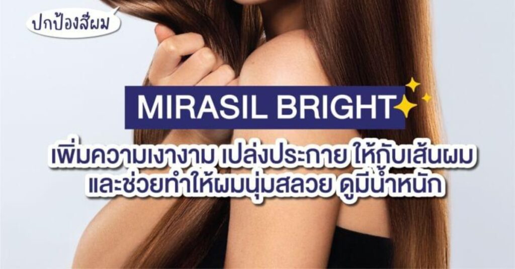 🔷 MIRASIL BRIGHT ให้ความรู้สึกเนียนนุ่มไม่เหมือนใคร กระจายตัวง่าย เคลือบเป็นฟิล์มที่หายใจได้ ไม่อึดอัดผิว และไม่อุดตันผิว ให้ความเงางาม ช่วยป้องกันไฟฟ้าสถิตและเพิ่มความเงางามให้กับเส้นผม และช่วยให้ผมนุ่มสลวย