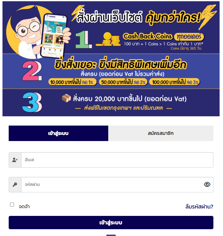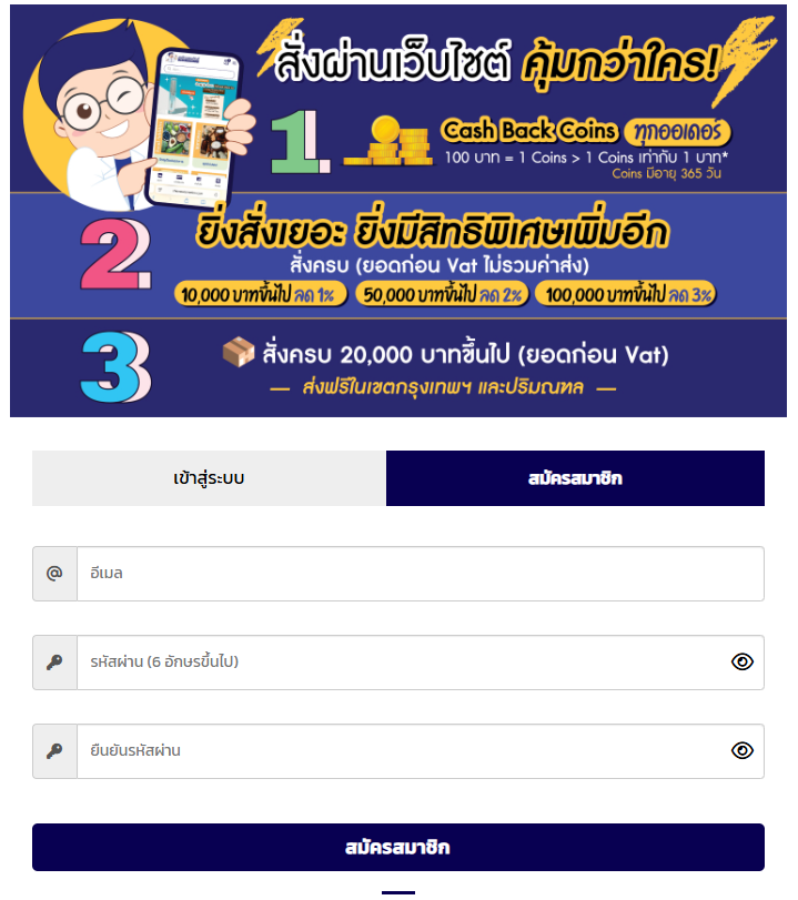 - คลิก สมัครสมาชิก (ถ้าข้อมูลครบถ้วน ระบบจะเข้าสู่ระบบให้โดยอัตโนมัติ)