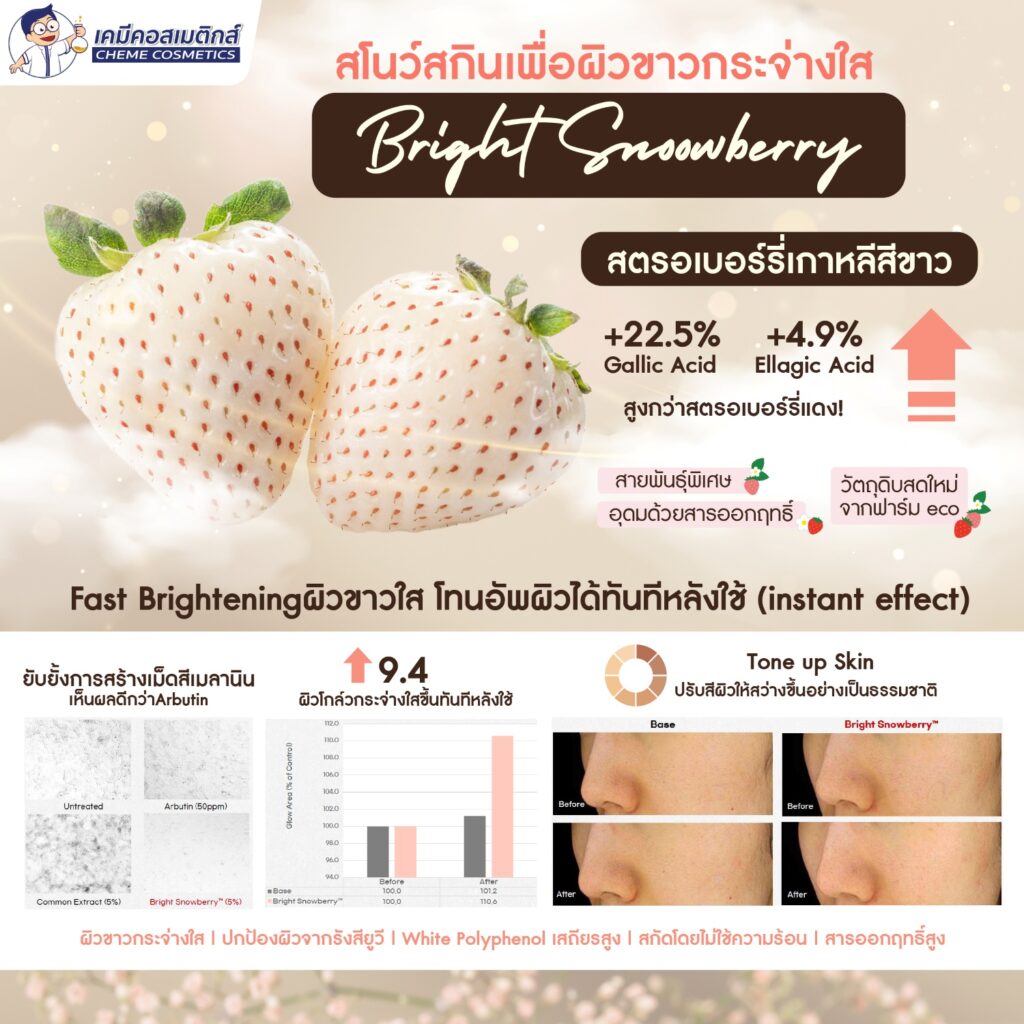 Bright Snowberry สารสกัดสตรอว์เบอร์รี่ขาวพรีเมียม เพื่อผิวกระจ่างใส ลดเม็ดสีเมลานิน ผิวขาวใส ลดจุดด่างดำ ด้วยพลังไวท์โพลีฟีนอล จากสตรอว์เบอร์รี่หิมะเกาหลี