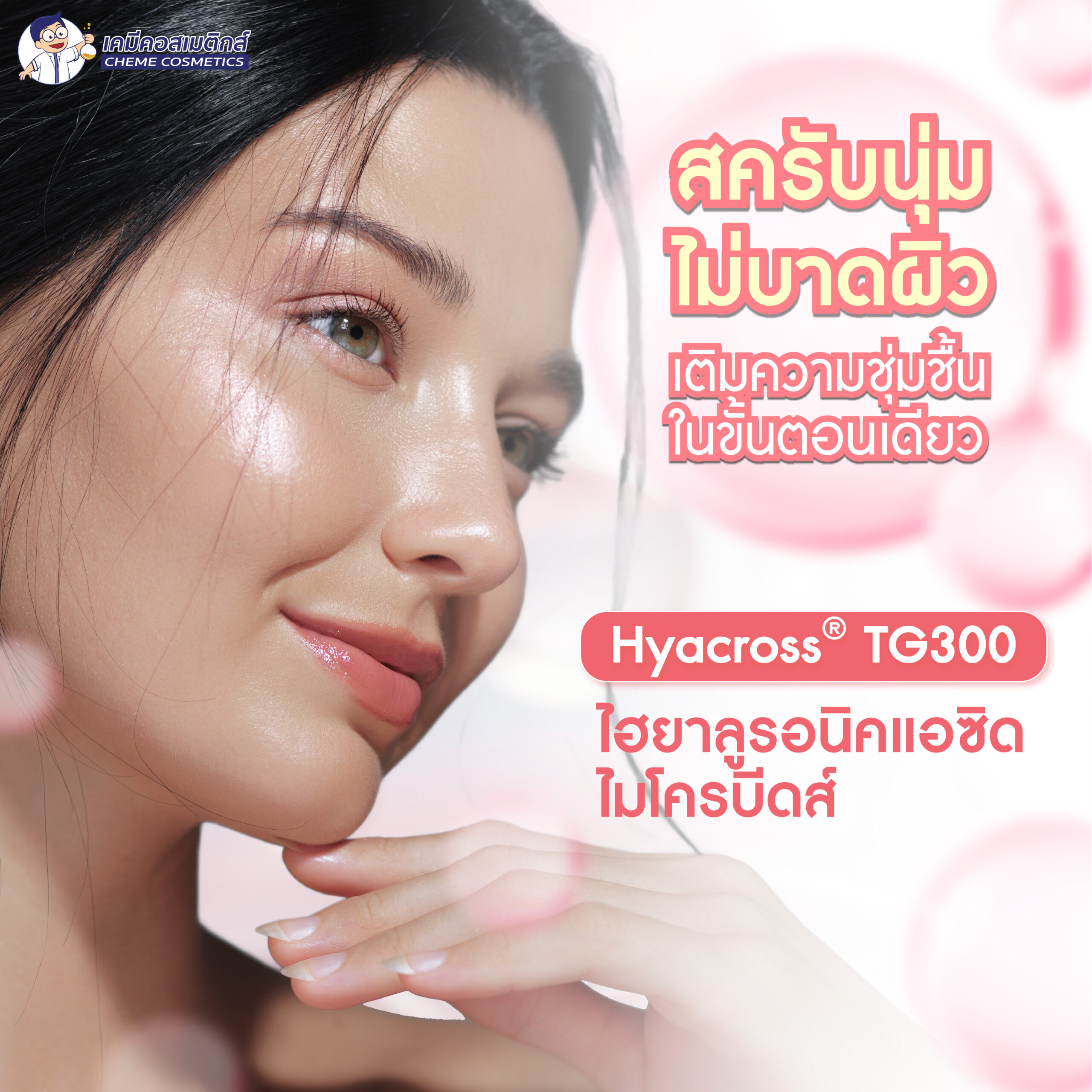Hyacross TG300 (Hyaluronic Acid Microbeads) เม็ดสครับผิวอ่อนโยนจากกรดไฮยาลูรอนิค ช่วยขัดเซลล์ผิวเก่าโดยไม่ทำร้ายผิว เพิ่มความชุ่มชื้นแก้ปัญหาผิวแห้งตึง เพิ่มความเรียบเนียนและเงางามให้กับผิวหน้าและกาย ปลอดภัยต่อสิ่งแวดล้อม