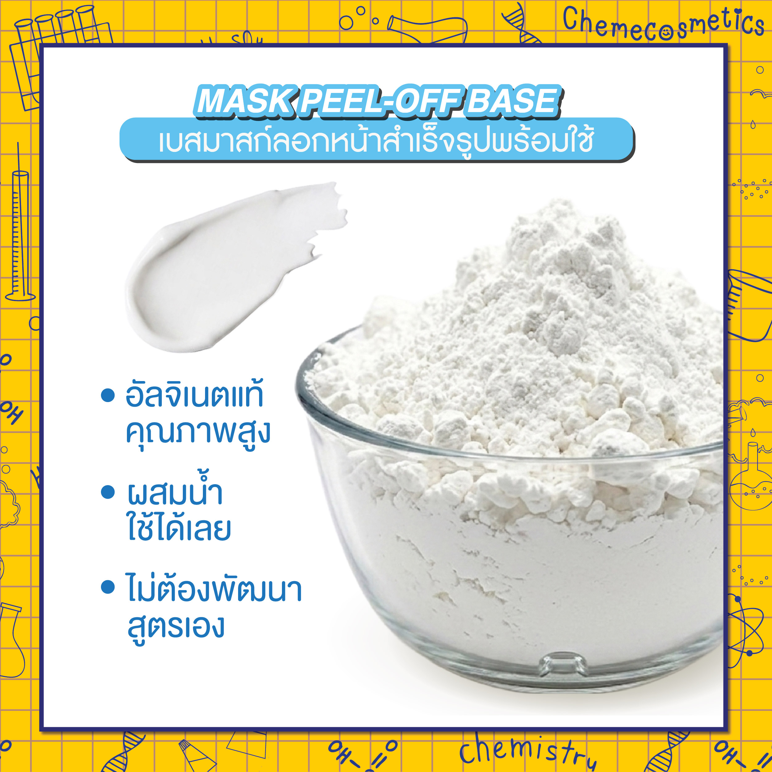 MASK PEEL-OFF BASE เบสมาสก์หน้าสำเร็จรูปพร้อมใช้ แบบพีลออฟ อัลจิเนตแท้คุณภาพสูง ผสมน้ำใช้ได้เลย ไม่ต้องพัฒนาสูตรเอง