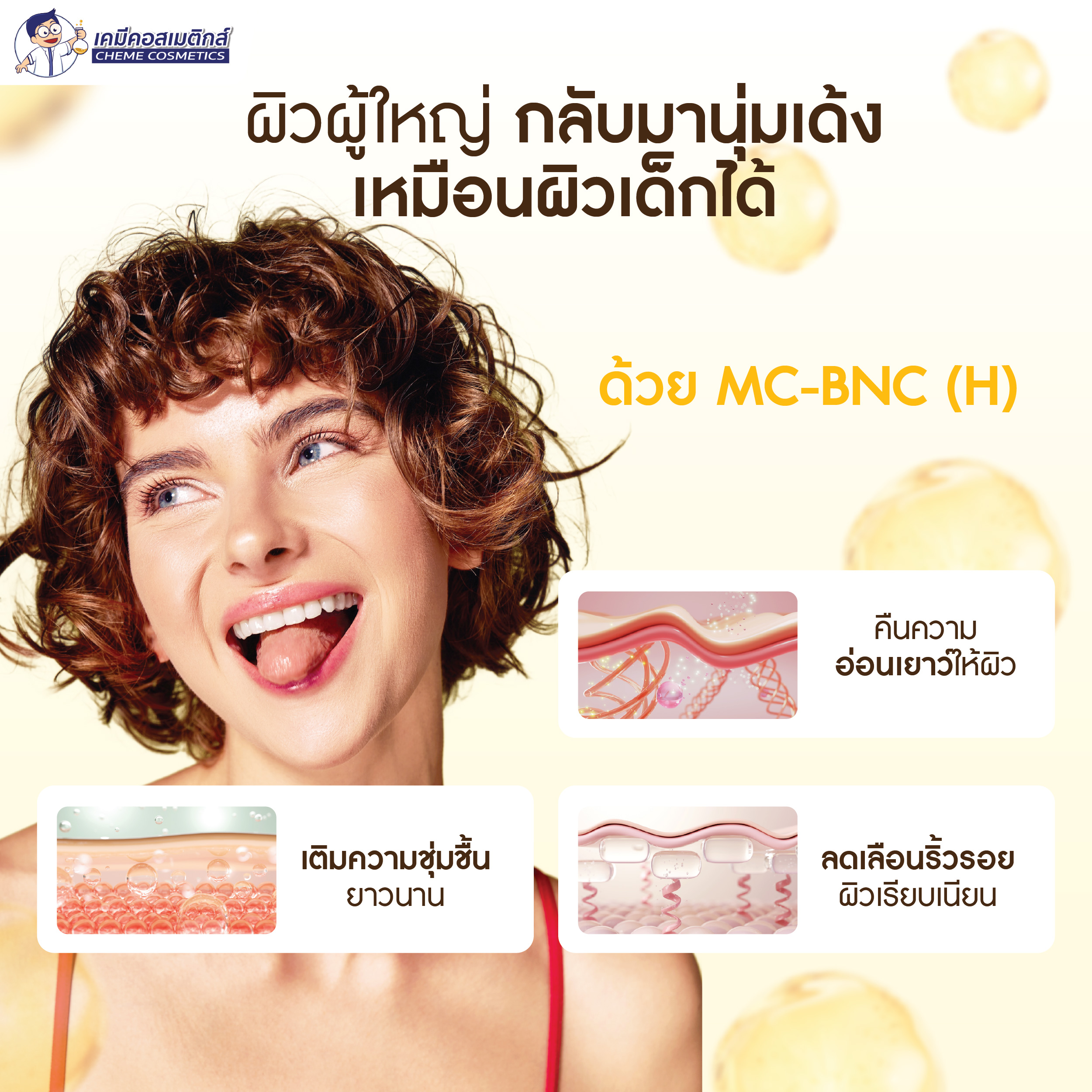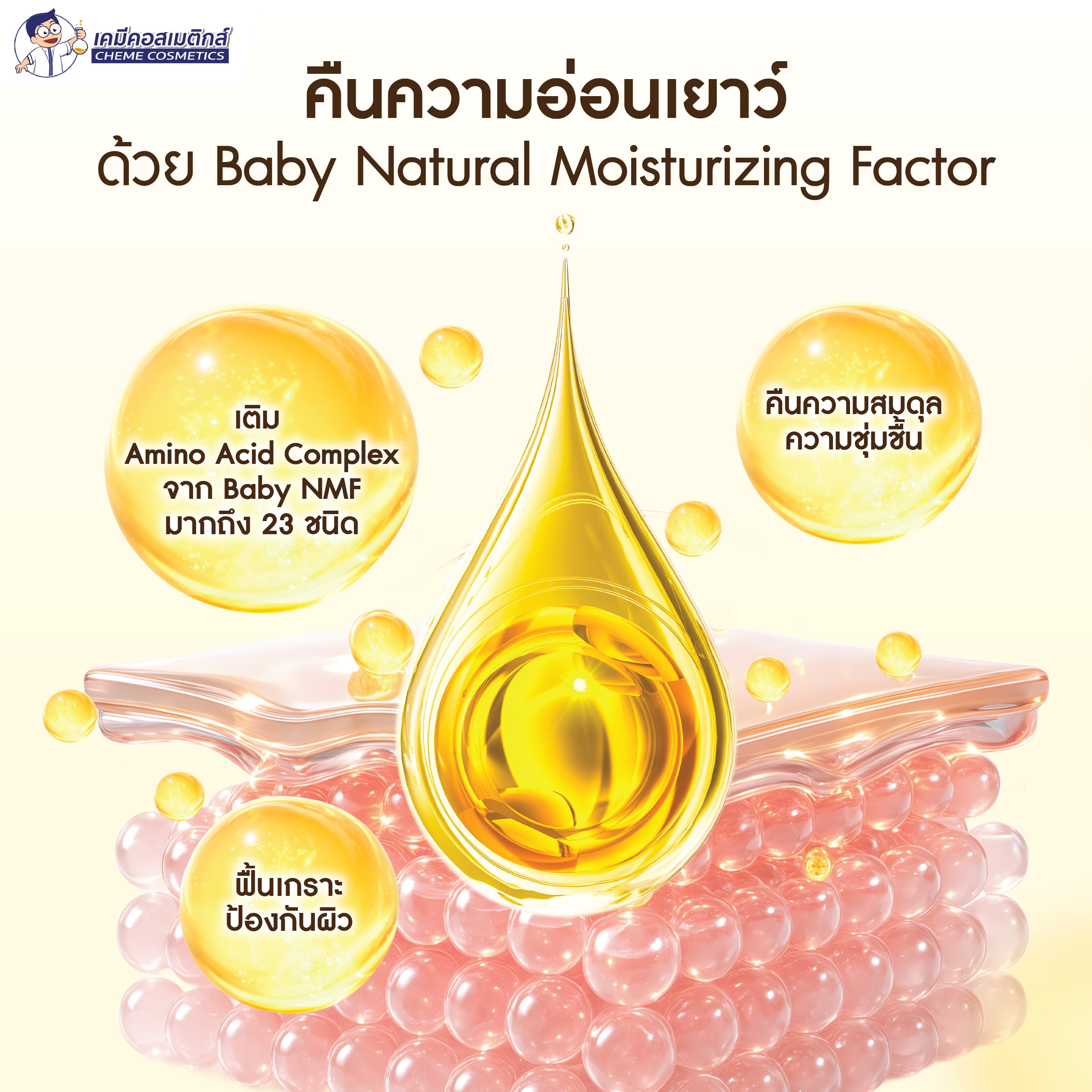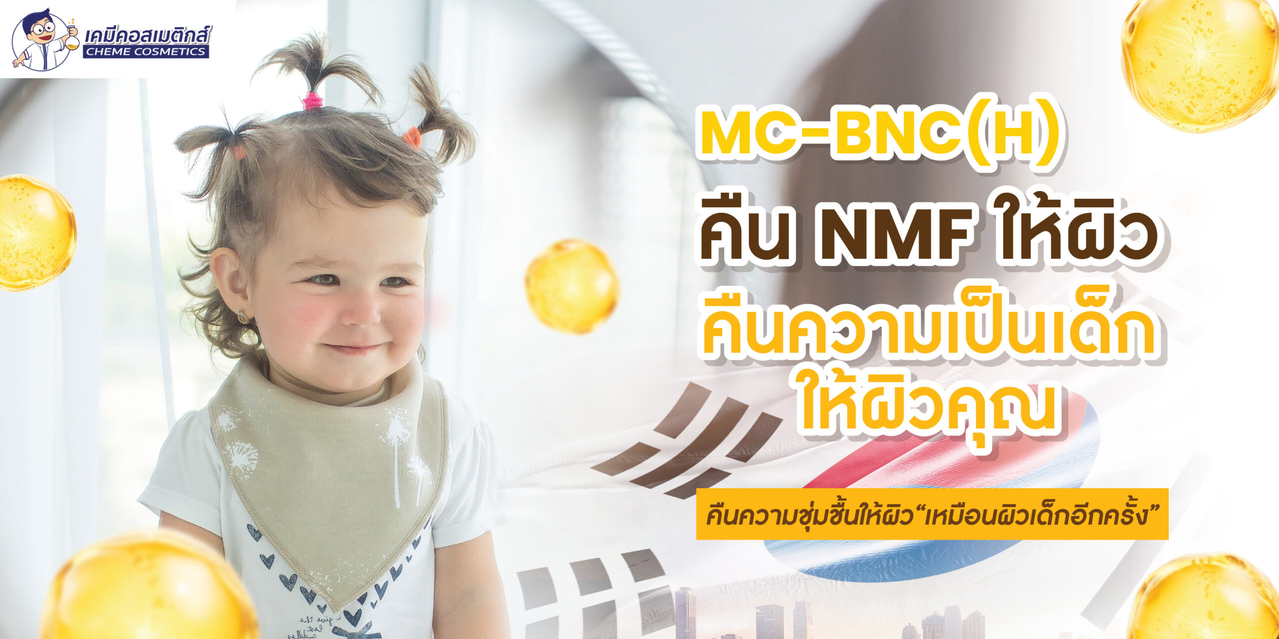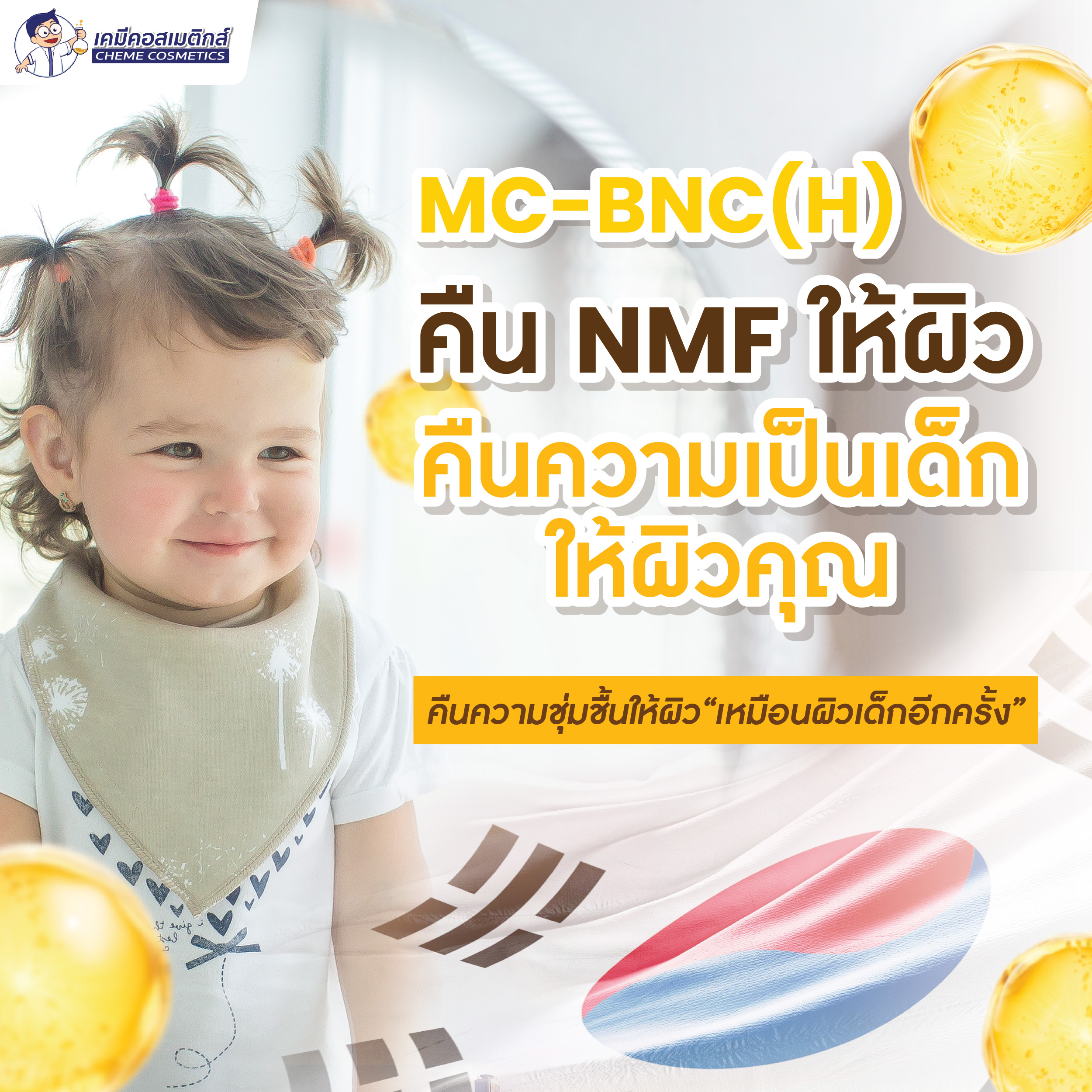 MC-BNC (H) สารสกัดโปรตีนหน้าเด็ก (Baby NMF Complex) อุดมด้วยกรดอะมิโนและแร่ธาตุ 39 ชนิดจากธรรมชาติ เพิ่มความชุ่มชื้น ลดเรือนริ้วรอย ช่วยให้ผิวดูอ่อนเยาว์และมีสุขภาพดีเหมือนผิวทารก